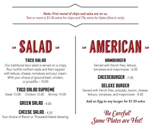Best chips and salsa in town. Too bad EVERYTHING else on the menu is absolutely TERRIBLE! At first I thought it was just a fluke that the burrito was super-nasty. I had one bite and they refused to take it off my bill. If I hadnt had 3 margaritas I might have complained more persuasively. On our next visit I had the chimi - equally awful! On the next visit (why in the bleep did we even give them another try?!) we ordered the nacho and they were the worst tasting yet! Go for the free chips and salsa. Spring for the top shelf margaritas but stay away from everything else on the menu. btw- it helps if you speak a bit of Spanish because none of the staff are fluent english speakers.