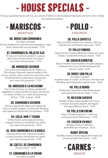 This is by far the best Mexican food around! Ive had the chicken fajitas-serving size was too big to finish. The Cazador burrito and chicken chimichanga are delicious. The staff and ownership are great as well. Ive eaten at all the other Mexican restaurants around town and they dont quite compare to Cazador.