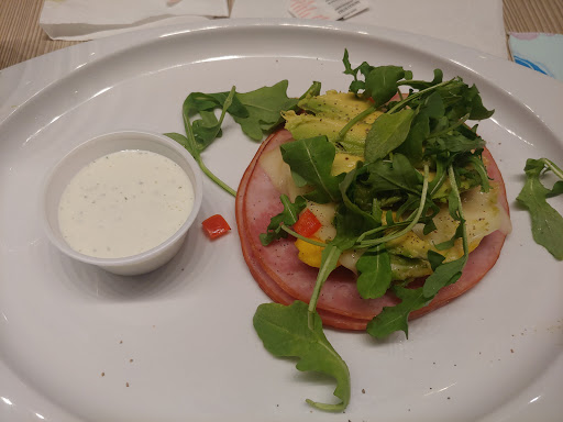 A wonderful place to eat a meal or just a grab a dessert or cup of coffee. A large variety of drinks, food or desserts to pick from and an equally large amount of seating options to choose from. The interior is nicely decorated using a variety of materials. It’s a bit pricey but the food is tasty and portions are filling