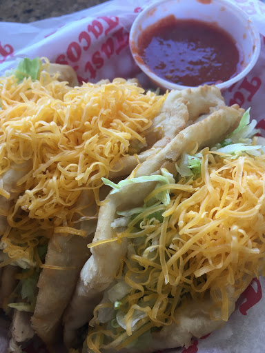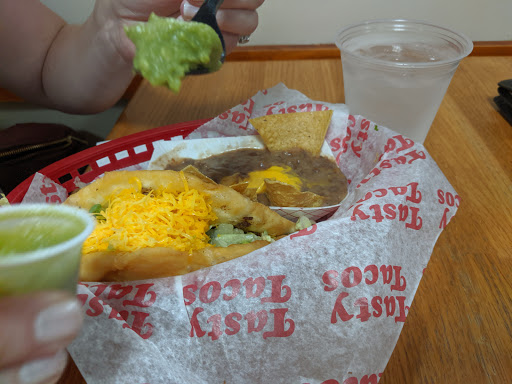 This Tasty Tacos is great. Clean store and great food. If youve never had a flour taco you are missing out. These arent hard shell tacos, they also arent soft-shell tacos... Theyre flour. Stuffed with meat and beans folded inside a flour shell then deep fried to a nice golden brown.