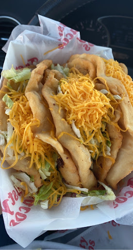 Puffy tacos! Order the original - ground beef and pintos is the best way to enjoy this deep fried treat.