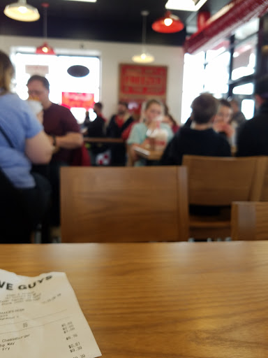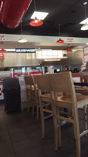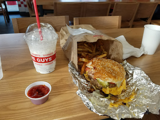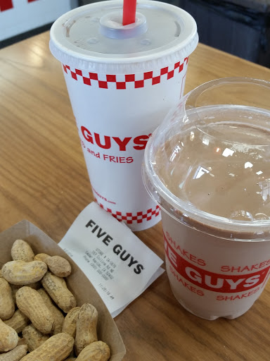 Five guys has some of the best french fries of any fast food place in the US. They source their fries from different local farmers every month and you get a lot of fries for the price. This location has shakes because it is a franchise but the other stores do not. Definitely check it out. But dont wait in a stupid long line for fast food. Its not worth it. Its good but if your reading this you live in the midwest and your life sucks and a fast food place that is on ever street corner of normal places on the coasts is new now but when its not youll realize that your all crazy for going crazy for a place that serves fast food.