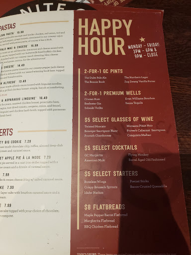 We showed up at Granite on a cold monday evening, and the place was packed with a 45 minute wait. We grabbed a few beers from the bar, and waited. We had our table ahead of schedule....I asked for the waiter to go ahead and get us going with his choice of appetizers....and it worked great. Was good food....good service....and wow...I this bill was low low low. For 8 people....I was amazed. We had beers....appetizers....ful meal....etc....and we spent less than $300.