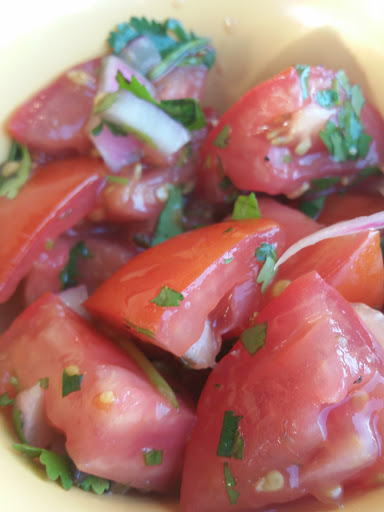 A perfect evening for light fresh food on the patio! We enjoyed sitting slightly outside, enjoying Mahi-Mahi Tacos with a light shredded lettuce slaw, Seared Ahi tacos with a wasabi-ginger sauce over thinly sliced cabbage, fresh tomatoes in cilantro and some broccoli parm! This was the perfect light meal, excellent with refreshing drinks, and the perfect environment. Exactly what we were hoping for!