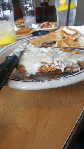 Took awhile for someone to seat us, once we were sat took 10 minutes to get a server ( Emma). Swearing coming from our server and loud music from the kitchen, our server was talking about us saying she could tell we were upset and "we wanted to fight her"?????...she must be a high schooler to even think those thoughts. She never checked on us once and my pancakes were cold. Wont be back