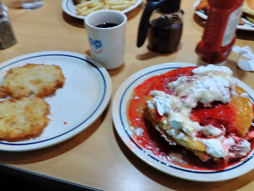 Place didnt look very clean we got a booth and there was crusty food stuck on the edge that looked like it had been there for a while, our hostess looked like she had just rolled out of bed or ad a bad hang over. My kids mac and cheese was dried out and hard dirty place for an IHOP .