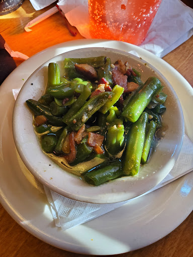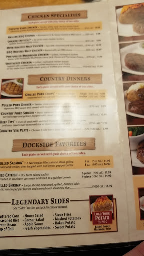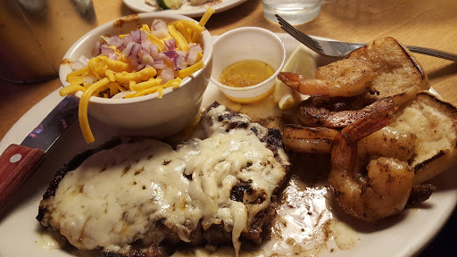 Love the food but today was my birthday and my daughter brought me here for my birthday. she had the chicken critters the breading was kind of dried out I had the 20 ounce ribeye steak medium well NOT rare it was only browned on the outside it was gross my daughter kept trying to flag down someone but ended up having to get up and take the steak to a waiter. Then when it came out when I first cut into it there was very little pink but figured they cant uncook it but as I was eating it it just got chewy and tough and as far as the free side it was French fries which I still had French fries but was not given a choice. The both across from us was really loud I dont mind noise but when you can not even have a conversation with the person across from you that is not decent I am sure the wait staff could hear them but no one asked them to quiet down so we had to listen to that and their cussing. People do take children their. The time before my daughters steak was way under done and it had to be sent back and she had ordered it well done. If we are going to pay 25 dollars for steak I might as well go by one and I can over cook it all by my self with out all the yelling and cussing. I know that medium well means a at least a strip of pink in the center not just a little brown on the out side. Deffinaftly will be looking into some place else to eat that is a lot of money for raw then over cooked steak that is tough and when my daughter sent her steak back she got a choice of side but yeah not a great birthday and she feels bad but it was not her fault. Also floor was really dirty and places that there was not carpet was slippery going out the door was a puddle of water or something.