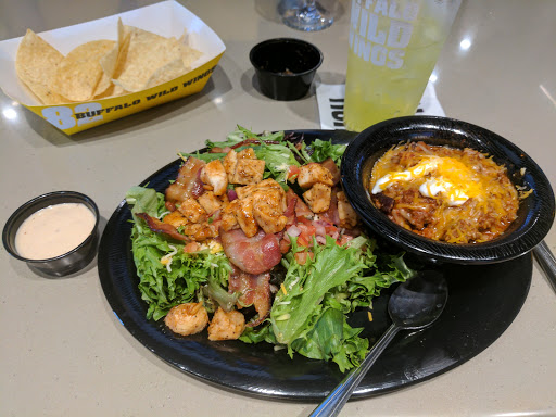 I am only giving them a 3 star because my family and myself had a bad first time experience here. There was a group of 7 of us, taking my husband out for his birthday. It was a little packed. But after getting in through the crowd I was standing at the front counter their was about 5 employees there and not one of them said Hi or welcome to Buffalo Wild Wings, instead i got blink looks like they didnt know what to do. I then asked a guy who was sitting down how does this work... do i let you know how many is in my party? He said okay so I told him 7 of us and the last name is Wilson if you need that. He then said oh ya i do and he then wrote it on a note pad and then my 9 year old grand daughter asked him if we needed one of those pager things because she noticed other people waiting had those too. So he gave it to us and I then had to ask him how long will it be before we get a table, he said about 15 to 20 minutes, I said okay that is alright we can wait. So then after 20 minutes our pager went off and our group went back to the front counter we handed the pager to the same guy sitting there. Then another girl came over and said how many is in your group and I told her 7 and she said oh sorry it says 2 on the note pad. So we had to wait about 10 minutes longer. We finally got a table it was outside. Underneath our table was a bit dirty so we had flies around us and the sun was blinding us. The waitress was not very friendly and was a little rushy. Our food took awhile to get and I ordered honey BBQ bone out wings and I got bourbon BBQ wings. My husband ordered mild bone out wings and he asked me to try one it was very salty tasting. We decided not to say anything because it already took so long from the time we walked in the door til the time we actually got our food. So our overall first experience at Buffalo wild wings was not good ... we might not be returning back any time soon and we thought it was a bit pricey.