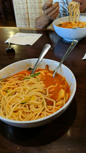 OK staff. Good sushi, or anything Japanese (sweet-flavored assortments) is great here. We ordered Chinese + Korean food, all pretty authentic. Everything seems decently priced, maybe a little bit on the medium-high side. The problem is that the portions are disappointing. $13 of any dish of the Chinese or Korean assortments give you hardly anything to start with. They give you little portions of meat, but jam-pack the whole thing with vegetables to make it seem like its an ideal amount. It wasnt. We ordered spicy everything, unfortunately, hardly spicy. Spicy, stir-fried squid was bland and tasteless. The spicy sauce seemed like it just was water + peppers so that it tasted hot. It did taste hot, but it had no flavor. Absolutely disappointing. We ordered spicy seafood soup. It looked hopeful, decent portions for the soup and lots of nice seafood stuffed into it. The soup, again, was tasteless. It had no comfort / savory bite to it. It tasted like the last drops of a soup that was clear. The spicy seafood soup should taste like any other crab styled soup, where the soup would taste with variety. It was literally just water, pepper, and if lucky: some seafood bite to the taste. It wasnt spicy either, unless I managed to trap the peppers in my throat and hoped the best. The sweet and sour beef / chicken was good. Tiny portions, overpriced. Dont go here if youve gone to a great korean / chinese restaurant at some point in your life. This place is flavorless compared to even Panda Express. Unfortunate. Do go here if you like foods with no tang or bite to it. I do give credit to this place for its heart and soul, they throw passion into cooking their meats near perfectly, but their spices and ingredients arent being used properly. Did I mention they have good sushi? Go here for sushi. Its pretty good.