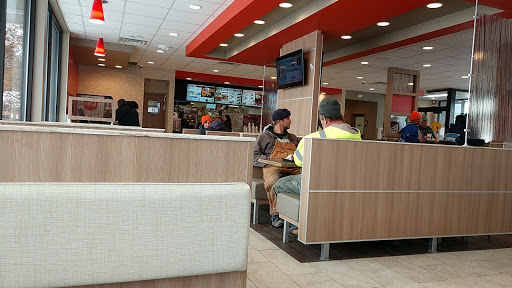 Restrooms cleanest I have seen in a LONG time at a fast food restaurant. Plenty of oval seating with chairs and booth seats for small groups. Cozy small tables for couples and those with smaller families. Eating area kept clean and supplies well stocked. One employee was nice and welcoming, the second needed a course in relating and just talking to customers. Large, large parking lot. Located next to a popular car wash.