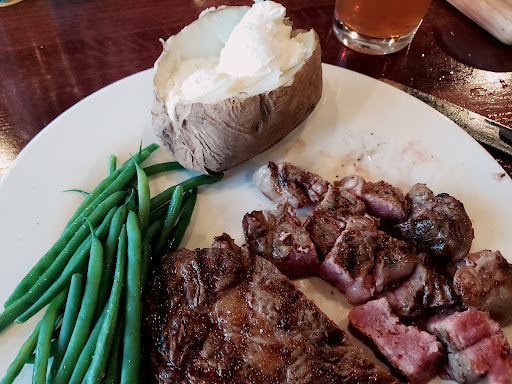 We were passing through town (from Michigan)and actually were camping in the area. We had reason to celebrate so I found this place on the river to have dinner. We had a wonderful table with a nice view of the river, dam and walkway. Service was just right. I feel bad I dont remember servers name... The surf and turf was probably the best meal we have ever had. The filet was cooked a perfect medium rare/medium and the lobster tail was HUGE and cooked to tender perfection. The shrimp scampi pasta dish we also ordered was unremarkable, but the surf and turf was plenty to share and made up for it. I dont write many reviews but I cant stop thinking about that meal! Thank you for starting off our cross country journey in style!