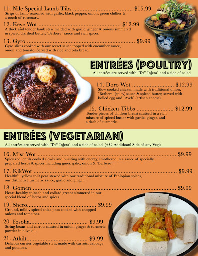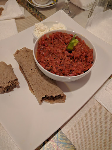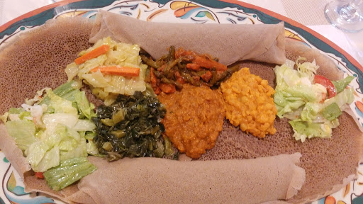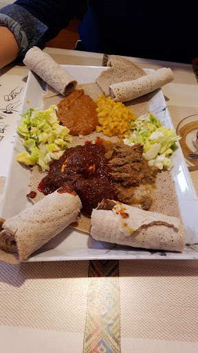 Ill start off by saying I know Ethiopian food. I think this restaurant has potential. The atmosphere could use a little work. The restaurant is quiet and might benefit from some soft background music. The portion sizes arent huge, and some of the dishes were slightly bland. The lamb tibbs were tasty- so kudos on that one. If I went back, Id probably stick with just the lamb tibbs. I didnt care for the vegetarian dishes. The injera was really good and seems as authentic as one can get in a midwestern restaurant. Authentic injera requires specific weather conditions present in Ethiopia/Africa to be truly genuine so altercations are made here in the states to ferment the injera batter to as closely replicate authentic as possible. I would say the restaurant should work on making the atmosphere more inviting and cozy, and working on making sure all dishes are flavorful. But its really nice to see another Ethiopian restaurant in town after the one downtown closed years ago. Oh and skip the baklava- it was weird, not very good and not worth the price. Ive never had baklava without some sort of pistachios/nuts, but for $3.50 you get two small pieces, one without nuts and one with. We just thought a mistake was made with the one without nuts, but they said no its supposed to be that way. Strange- maybe its an Ethiopian thing.