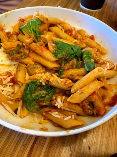 Placed order online, told that When I got there, it would be ready for pickup right away. Got there and went downhill from there. Register couldnt be manned by the current employee. There was only one register now. Employee that had just gotten done was trying to get food to go, but made several negative comments and took his time with paying. When I finally got to the register, got my bag but not all the silverware needed, food I ordered, or even the size of drink Id ordered. Fine. I have food and left to eat it at home. Get ready to eat Tuscan linguini and it was such a letdown from previous food I got from Noodles. Cookie was old. Soup was tasteless. Have never been so disappointed that I left a negative review, but the whole event was too much to ignore.
