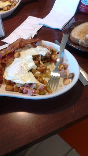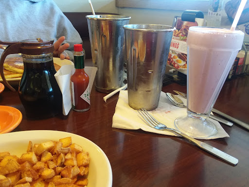 The wife and I dropped on in this place about 10 minutes after 9 on a fine Thursday morning. Did not see a sign indicating whether we should seat ourselves or wait to be seated. Hostess finally showed up with menus when we took it upon ourselves to sit down. No straws for our drinks, they would arrive with the "manager" (lol manager) who probably should have ordered some. I was told it might take over 20 minutes to get a small stack of pancakes. Enstranged waitress scurries back to the kitchen to ask about them, someone blurts out "THERE IS NO PANCAKE BATTER!!" The manager apparently arrived, and everyone but us got straws. We got up and left, and went across the street to Family Dollar, where I bought a pancake mix and a bottle of syrup, and made my own stack before the 20 minute mark arrived. Please.