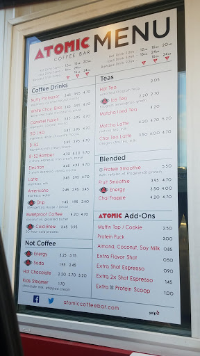 Amazing tasting coffee drinks! My daughter really enjoys the Atomic energy drinks. Id like to see them find a location where you can sit down or drive through.