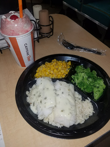 This is an A&W, Long John Silvers, combo store. I visited for the LJS food on 2 occasions; dining inside and using the drive through. (My review is based on other comparable chain, fast food stores.) I was impressed by the quick service and attentive staff behind the counter. Usually, fast food places are bare bones on service, and lack any real effort. Surprisingly, this place was well staffed on my visit, and they walked the dining room helping customers. I understand why it was so full that day. The food was made quick, served properly, and came out as expected. I odered the fish and chicken combo meal; greasy battered fish was exactly what I wanted for my "fish and chips" craving. Their restrooms were clean as was the dining area. Easy parking outside and a convenient location off a major road were a plus.