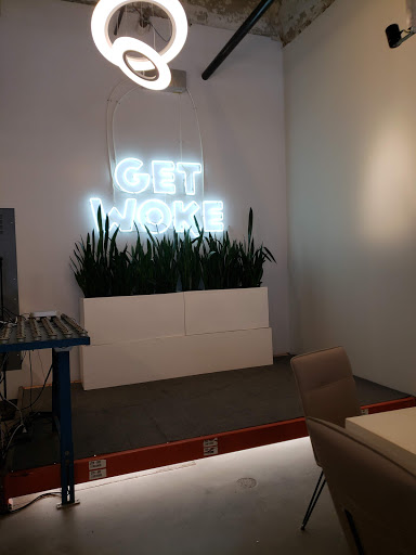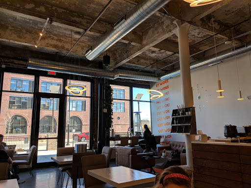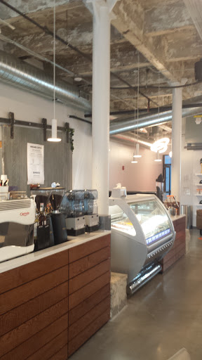 This is a Nice modern space in a rehabbed industrial building. The atmosphere is comfortable, the service is great, and the coffee is fantastic.