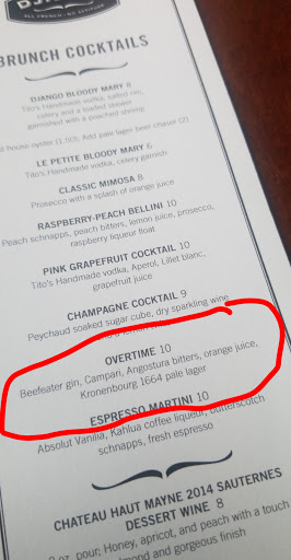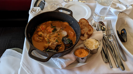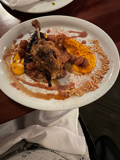 The food and service are excellent, and both the house and seasonal cocktails have excellent variety - of note was the Peach Bramble and the Templeton SangRyeA, but there is also an excellent wine selection. Apps are pushed hard, but very worth it. My fiancee and I shared a "chefs choice" charcuterie plate, but Ive also had the fried Brussels sprouts - excellent, but a bit large for two people. The coq au vin is my favorite dish in DSM, hands down. Rich umami finishes off in a delicate bitterness, and its got pearl onions, bacon, and mushrooms. Ive also had the filet a rossini, which has foie gras - not my thing, but tasty. Ive the Pot de Creme - essentially a bowl of dark chocolate mousse. Its delightful. All in all, one of my favorites in the metro.