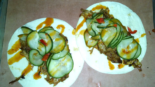 They have a fusion of tacos and traditional bbq platters, and 3 unique sauces to complement the dishes. The guru sauce has a perfect balance of sweet and tangy, and neither of those flavors are overbearing. The harissa sauce is loaded with spice that delivers a zesty kick with each bite. The Korean sauce has the lowest viscosity of the trio, with a strong taste of sesame oil. It was too salty for me. Of all the dsm bbq places, Guru has the best sauces. The restaurant also has a great ambience to it with outdoor seating. I had the pulled pork sandwich which was good but didnt beat Smokey Ds. I tried the brisket and chopped pork from the meat platter, both were good but in my opinion, relied on the sauces. The service was good; the food arrived 10 minutes after ordering over lunch hour.