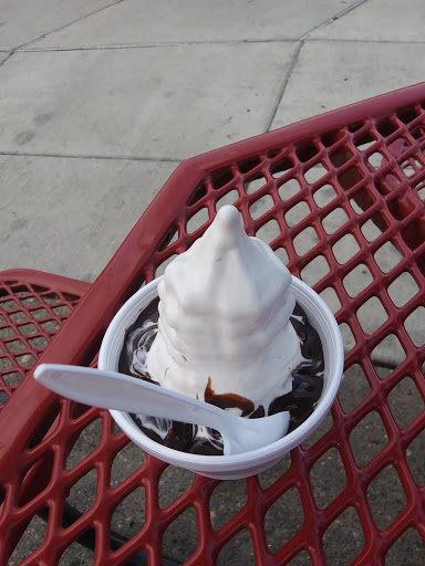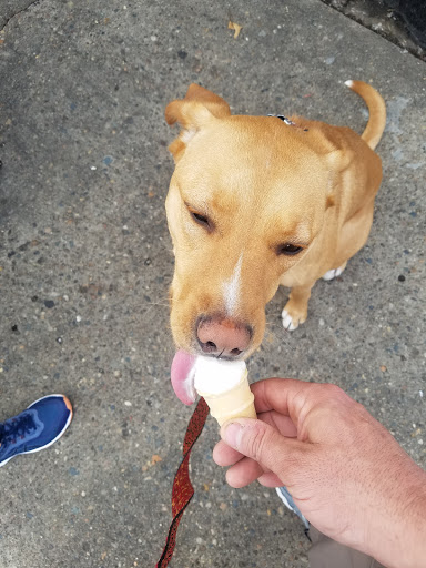 Yummy! I had a chocolate malt, and I would totally recommend it! Friendly staff, and they love puppies! Free frozen puppy treats for your canine friends. They could use a bit more seating , though. And more shade on a hot day.