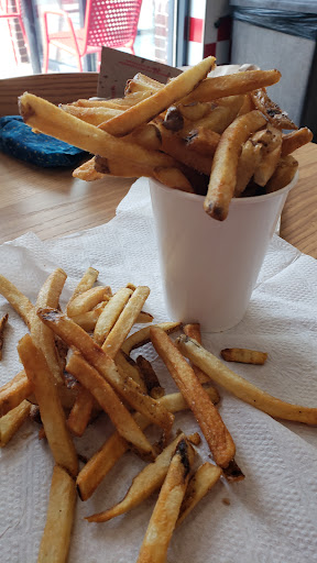 Wayy too pricey. Being a business/marketing major, my thoughts go crazy when I think of the scheme of 5 guys. Actually did a whole case study on the founders of the restaurant 3 years ago, right before they officially announced their new location in dubuque. Very wholesome family story. However, the burger didnt jump out at me. And although i admire the fresh handcut fries in store on site etc etc, theyre too thick not cooked for enough time.