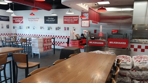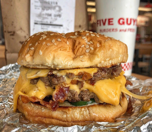 Five Guys, while carrying a large price tag, always delivers the bang for your buck with their delicious burgers and copious amounts of fries. Relatively fast service and their simple menu makes for a quick trip if youre in a rush, but if youre looking to sit down, their classic red and white colour scheme is quite pleasing to the eye and the free peanuts are also very tasty and enjoyable to snack on.