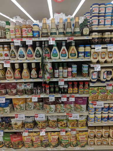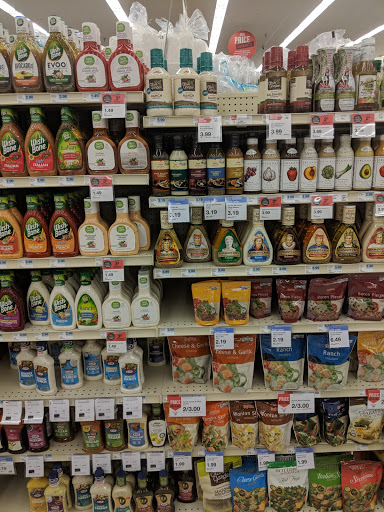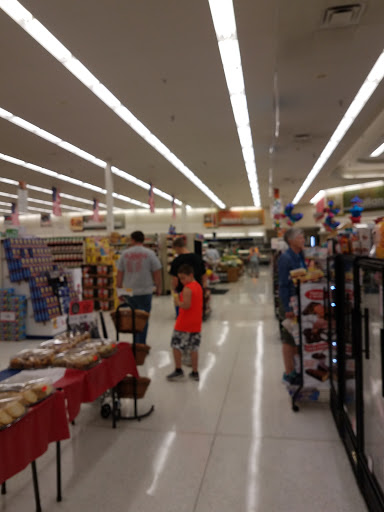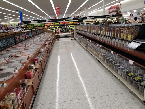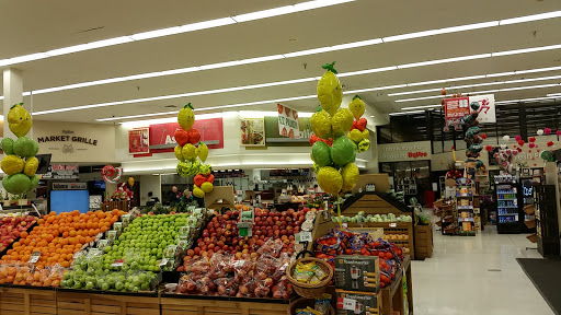 My "home" supermarket. In-store restaurant, deli, salad bar, bakery, butcher, Health Market, pharmacy, and Starbucks. Large alcohol aisle. Italian, sushi, and Chinese prepared foods sections.