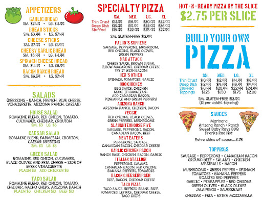 Their pizza is pretty good but getting it into your mouth can be hard & expensive. I live 1.7 miles from the nearest location and their website says I am out of their delivery area. I wanted to use their website because it offered a 25% coupon (desirable when one large 4 topping can net them $42). This isnt a top shelf pie that should cost that much. This is crappy gooey college pizza. Anyways I called and tried to order over the phone but they couldnt honor the coupon from their website. They suggested I try order up or eatstreet. These services hike the price up even higher and offer no coupons. Falbos if you are reading this fix your stupid website soon please.