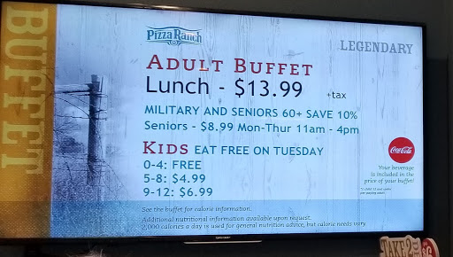 Pizza Ranch not only had the best pizza i have ever tasted but they have amazing chicken and a wonderful salad bar, and to top it all off the staff were very nice.