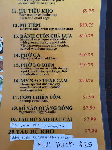 Solid service, good prices, great food. Got the duck soup, which was amazing. Pork egg rolls were hot and tasty too. Friend got the pho, which he liked too. His iced coffee was a little sweet though, and nothing too memorable. Just a little hard to understand the owner.