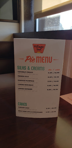 Village Inn or V.I. as it is affectionately known to many was a suprisingly good find one morning when we were looking for a quick "better than Dennys, but still quick/comfy" brunch and to our surprise it didnt disappoint. The place reminds me of a colorful redesigned 50s diner. Its sort of like a half step above every other generic diner, but on Wednesday they give you free pie (hence the fourth star!). I had an omelette, which was quite tasty and my better half had a burger which too was delicious. Our waitress was friendly and the service overall was above average. Good place for groups, but beware of the wait on the weekends. Always good for people watching and they serve a good cup of coffee as well. Id bet a shiny new dime its a great spot for late night dining as well. Worth trying if youre in the mood for relatively quick diner-esk food and a healthy serving of pie!