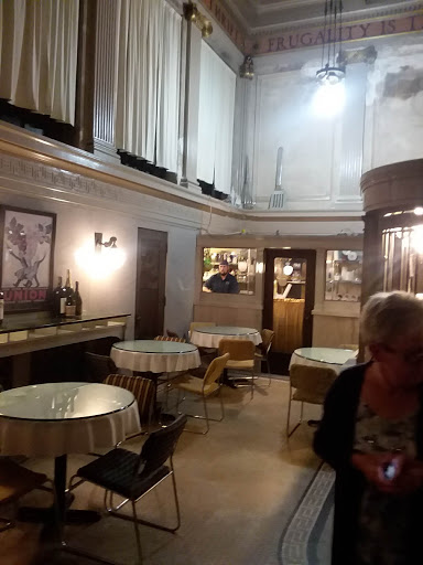 Weve been wanting to visit the bank since coming through on RAGBRAI a few years ago and is this place a gem! On a lazy Friday we took a leisurely drive on over and were blown away! It seemed like this was the only thing in town - besides the gentleman sitting in an old golf cart outside his place (he was there when we left too). Totally worth the trip! Upon entering, we were greeted by the owner and were very impressed with the place. Two seating areas were at our disposal - the bar, which was located inside the old teller area and had some really cool memorabilia and chairs in a small seating area aside the actual bar, and the larger area in what was the bank lobby. With only 3 or 4 tables and total seating for about 15 people it offers a pretty intimate atmosphere, but is big enough to host a solid group of friends. Regardless of your party size, its best to call ahead and make sure youve got a seat. The decor in the bank was very fun and a good combination of both historic and modern. Plenty of decorative items give it a little flare and compliment the high ceilings and stone walls. The four wisdom filled sayings around the ceiling were good food for thought and are ones Ben Franklin would appreciate. The wine list and beer selection were both very impressive. The beer list was no less than 25 deep and had a great variety of lights to darks from all over the world. The Obolon Dark was particularly nice! The wine selections were equally impressive with roughly 30 bottle available and tastes for any palate. The food is where the magic truly happens here and we go so far as to say this is some of the best food weve ever had. Served small plates style with both cold and hot options, theres plenty to fill you up and even more to sample/share. The Stromboli Bianco was heavenly - quintessential meat and cheese with a pesto that was amazing. Plenty heavy to serve as the big item of your group. The La Quercia Prosciutto is a local favorite and is considered by many to be the best Prosciutto you can get. The presentation was excellent and served with olives, it made for a lovely bacon-esk treat! Next we samples the mushroom tart and it too was lovely. Flaky crust with a delicious and rich mushroom center. The final item we sampled is probably on the top 5 list of things Ive ever tried. The "Devils on Horseback" is sheer genius and something that everyone who comes here should try. Its so good, it gets its own paragraph! "Lightly toasted pinenuts inside sweet dates and wrapped in applewood smoked back". This description sounded so good I read it three times! The pinenuts gave just a little crunch and smokey flavor that complimented the dates very nicely. Wrapped in legit bacon and this was ready for primetime! The kicker however was the addition of maple whipped cream. I was like a beautiful maple hug that was there simply for our pleasure. Put another way - imagine if Chuck Norris and his beard had a child - that child would eat this exclusively. The ambiance was lovely. Classical music in a very relaxed setting with some incredible food and (for me) great company as my better half was there too! Bottom line - this is a place worth driving 40 minutes to and checking out. Its a different and unique setting that serves some incredible food and drink. The food is familiar enough for those who dont want to stray too far, but different enough for those of us wanting some adventure. We found it to be the perfect place to spend an hour and a half eating, chatting and just enjoying an evening. This is where well be taking friends that come into town and somewhere we plan to be back to as often as were able.
