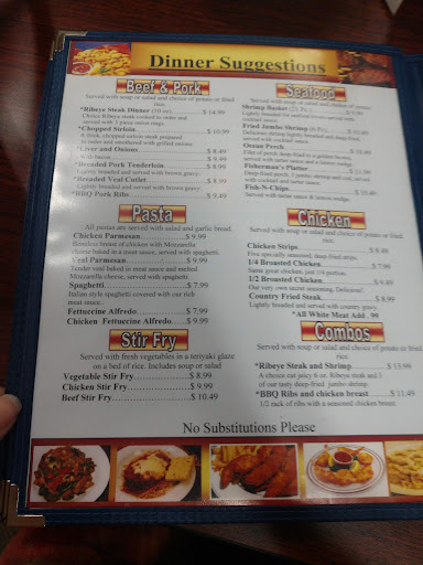 Ordered the Senior 2 piece Broached Chicken from the menu. Nice sized portions. Mashed potato with gravy, green beans, and side salad. All for only $5.69. Quick and efficient service service, clean facility. Food was not spicy. The chicken could have used a bit more spice; however, overall healthy and paletable. If travelling I35 N. This restaurant is not easily assessable. We were hungry though and took the extra few minutes to follow the signs into the town, about 5-7 miles. After we got back on the. Interstate, and one exit down, we saw other places to eat that may have taken less time.