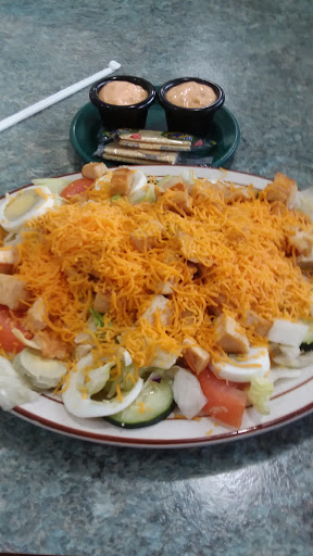 Will not go back! Thisniss our third time eating there and every time it gets worse. Today my wife ordered nachos and the chips were so old and stale we could not break or twist a piece off. The meat was dry you could even see it before you ate it. Didnt come with half the toppings it came with and they added letuce when it wasnt on the description. My son ordered scrambled eggs and got eggs that the yolk was scrambed but it looks like they stuck in an Pan and flipped then served. I was out of a drink most of the meal. The waitress never asked us how it was, if we needed refills or dessert or anything, she didnt even try to make our stay any better. When told about my wifes nachos she just said Ill take it off your ticket and didnt even say anything about the eggs. Didnt try to make us feel welcomed or even remotely sorry eevhad a horrible meal my wife couldnt even eat! Last time we went they had a bunch of egg shells in the scrambled eggs for my kids. Plus the place was nasty looking. Almost every mirror or window in that place was all smeared. Flies all around. Floor was so dirty one lady spent our whole time there vacuuming the floor. It didnt make much of a difference. Will not go back