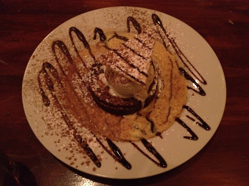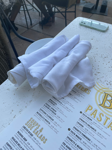 Weve eaten here a number of times. Last night, unfortunately it was not such a pleasant visit. First, I drink water. I dont order pop or tea. When you order water, ask for a pitcher as you may never get another refill. We sat outside. Ordered chicken parmesan - to share. I asked when I ordered that we receive additional sauce. We always do because they will only give you a tablespoon of the stuff on the dish. Not sure why, maybe its a high fashion thing. The food was delivered absent the sauce by someone other than our waiter. We had a difficult time explaining to him that we had ordered extra sauce. Not surprisingly, he spoke Spanish. And, not surprisingly, our food had very, very little sauce on it. We started eating. The guy finally brought the sauce - a small cup with maybe two tablespoons of sauce in it. We used it and waited for our waiter. I drank my water and we sat and sat and sat. When he finally showed up, he asked if I wanted him to sack up what I hadnt eaten, which was 80% of my plate. I said no, I ran out of water long ago and am unable to eat without water. My date gave up on eating her meal as well as it was cold and no sauce was delivered. The manager came to the table and said that we would not have to pay but could he give us a gift certificate. My date said that would be nice as she enjoyed the cheesecake. He left never to return so we got up and left. Hard to believe service could be so bad. I think well stick to Biaggis. By the way, the Bocci ball thing they have going on... I saw some kid, maybe 8 or 9 bounce one of those balls off some ladys leg who was sitting by the game area. Not a good idea to allow kids in there throwing those things. His dad ended up buying her meal.