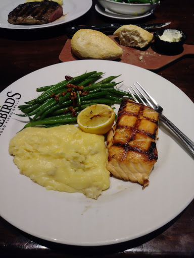 I was visiting from Oregon and on September 6th four of us tried Firebirds for a good steak dinner, sitting at table .63/1. The decor was very nice while noisy, and smell of the wood burning aromatic. When it came time to order I asked what kind of beef and our waitress didnt know, I asked about aging and she didnt know. She came back with the answers twice? We asked for a certain cut of New Your Steak and she didnt know what we meant so again left and returned . When the meals arrived the Filet Minon wasnt cooked properly and had to be redone. The 14oz New York and 14oz Ribeye were very tastfull if you could get by the fat. Both plates left 4 to 5oz of fat. Wasted meat. For $162.00 I expected much better food and service. I wont return with friends my next trip. I gave two stars as one meal was good and the location was convenient. Staff needs to know what they are serving!