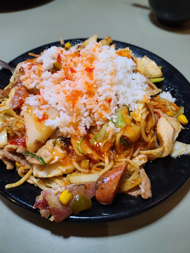 Abundant amount of food, with exactly what you want. Meat, noodles, veggies. All topped with exactly the sauces you want to flavor it and cooked up on their circle grill. Dont forget to try their Asian salad at dinner.