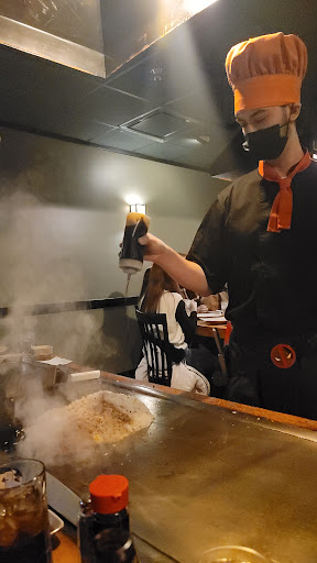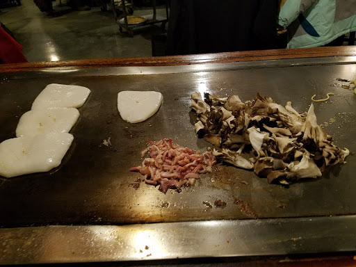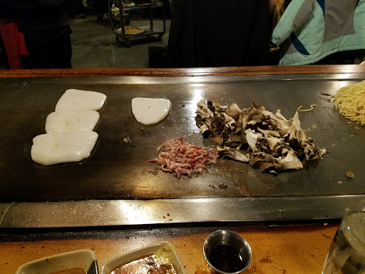 Owner is always there and will always cook when hes in, proves he loves what he does, and cares about what he owns. Food is awesome. If you know someone who doesnt eat shrimp have them try the free appetizer shrimp with ginger sauce, OMG! sooo good! YOU CAN BUY IT TOO! They recently remodeled, and it looks great in there! wed steak and shrimp special 2 for $30, which comes which free appetizer, salad, soup, meal, then mushrooms, pasta! Huge meal !! They cook infront of you, at a table of you and your friends or strangers, but the chefs are very friendly and keep things fun and casual. TRY SCALLAPS!! wowzer! If your feeling crazy try a volcano drink! Great small party place!