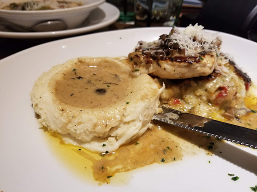 The breadsticks were hard. Both batches, served at different times so not sure if the recipe had just changed. They didnt seem overcooked. Still tasted fine. Just really dry. The chicken and shrimp carbonara was pretty good, kinda pricey. The lasagna was cheesy and excellent as was was their meat marinara. The stuffed tortellini was really cheesy and did not skimp on filling. Salad was a little disappointing. The lettuce was not refined. Lots of hard, bland stalks cut into big pieces. I used to think their dressing was the best but now it has lost its uniqueness. appreciate The pepper mills at The table and their always offering of freshly grated tableside cheese. Yes please. Dont stop please. The potato and sausage soup seemed watered down a bit but the fajole and chicken gnocchi were awesome. Shouldve had more. Craving it now. Neat electronic menu and ordering option. Used the check out feature and it was smooth, fast. Love the technology. Will have to bring my niece.