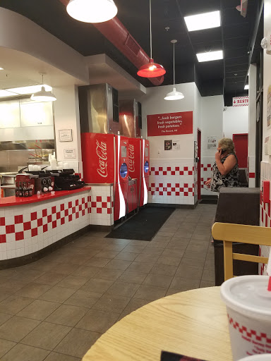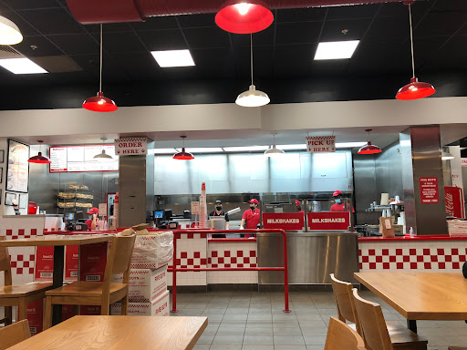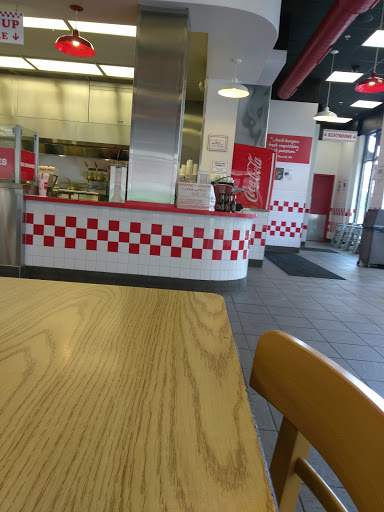 Im fortunate to live nearby. The service has always been very consistent. I appreciate that Five Guys has spicier options that put the other burger joints to shame. The jalapenos are always fresh and add some serious heat.. I love to pair it with pickles. The cajun fries are the perfect compliment. Portions are huge. This location has been reliably fast, and always polite. The staff are great.