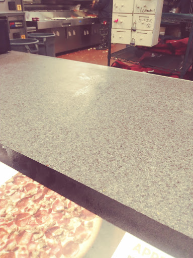 This place is filthy! There is dried pizza sauce smeared all over the mouse at the register. They dont wear gloves to prepare the food at all. There is no trash bags lining their trash cans and I saw one of the cooks grab the trash can bare-handed, fingers on the inside of the rim, to pull it close to where she was working and then went right back into making a pizza. People went back and forth from the register to the office to cooking without washing their hands. I saw a driver come in from his car and box pizzas without washing his hands. I will NEVER order from here again.