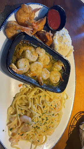 GHETTO. If I could give -0 I would I suggest not going to this Red Lobster until they hire decent people. Including a manager. I had a group of 6 on Saturday. Our total bill was around $200+. Someone kept turning the AC on (was close to closing) therefore we froze the entire time we were there. (Mind you it was already 40 degrees outside) Our food took forever to come out. It was cold and half the table got served first vs the other half because supposedly no one thought to follow our server to bring the remaining meals out. So while she is taking orders, half of us have food and the other half didnt. Our server was on something. I had her the first time we visited and she was great...this time she was all over the place. She had the shakes and couldnt get one order right. Left drinks at the bar...when they came back the ice was almost melted. The Ultimate Feast is a joke. I would never pay that price for what was submitted to our table. I tried to use my gift card that my sister gave me for Christmas when the bill came. She took our CC, the gift card, charged our CC the entire bill and took the gift card. I noticed that the charge on the CC wasnt right and was for the full amount and inquired. They tried to tell me my gift card was invalid. (mind you I checked the balance before I went and I have the receipt for it) The manager after us complaining several times then took the $25.00 from my gift card off the bill. Now lets talk Kitchen. You have to walk past the kitchen to use the restroom. Here is a big problem. While everyone is waiting on their food and getting upset, the kids in the kitchen are doing the "nay nay" or the "watch me youuuu". It was a dance fest in the kitchen. Complete party and the kitchen was nasty looking. You could also hear them laughing and talking about how people were complaining about the food that was being sent back. I thought the entire kitchen staffs behavior was ridiculous and all of them should have been fired that day. Red Lobster is not a club. It is a Seafood Restaurant. The bathroom was quite disgusting as well. There werent paper towels or hand soap. I dont think a broom was used except for maybe first thing in the morning and that is a maybe. I will NOT EVER go to this Red Lobster when the one on NOLAND IS SO MUCH BETTER AND THE FEAST IS A TRUE FEAST!!!!!!!! STEER CLEAR OF RED LOBSTER IN THE LEGENDS UNLESS YOU LIKE DISAPPOINTMENT, BAD SERVICE AND COLD FOOD.