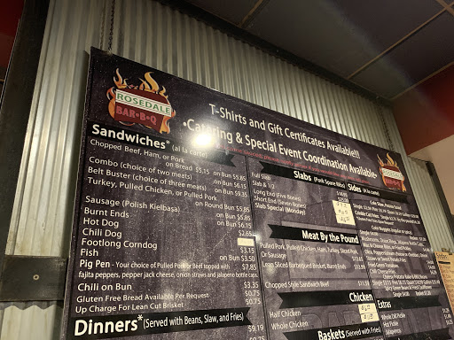 Before Oklahoma (now Kansas City) Joe, or Q39 even dreamt of daning white suburbanites with its trendy interpretation of Rosedales and the now closed Quicks, white, and Hispanic auto workers and jobbers from the plants nearby would flood these places at lunch. Before BBQ became an art, when it was still just food, Rosedales and Quicks offered the working man a solid, hearty meal for $3 - $4 including a can of generic pop. But that was then. During the nineties and early 2000s, white BBQ struggled in Kansas City. Staple eateries which had been open for 50 years or more struggled and eventually shuttered, while the bohemouth of Gates, and smaller LCs and Bryants, thrived. Truly white BBQ was never intended to be gourmet. If you had told me in 1992 that people would line up and pay $25 for a plate of it, Id if thrown my emty can of RC at you and told you were crazy. The white BBQ places used to complete with who had the cheapest slabs. Quicks and Rosedales often would go down to $7, or even $6 on slow nights. But just 25 years later, Rosedales is still the ONLY original representation of what Smoke Stack, Jack Stack, Q39, and Kansas City Joes tries to be. The extensive menu is highlighted by monster sized ribs and smoked birds. The fries are good too. Steer clear of the beans. At one time a half bird, fries, and an RC cola represented about 75% of their orders. Thats still the best way to go. The sauce is made daily and the freshness creates a natural heat, which makes the spices very, very paletable. Make no mistake, Kansas City style BBQ is black BBQ. Rosedales is really Oklahoma, or Arkansas style. Big and juicy like Texas, but all pork and more heat.