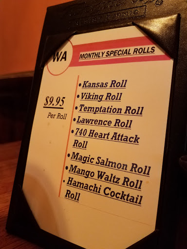 Wa Special with sashimi, sushi and rolls was delicious. The Kansas Roll was to die for that was recommended by the waiter. Delicious! Also the cold saki was really good. Service was great, food delicious and great atmospher. Very happy I selected this restaurant my only night in Lawrence.