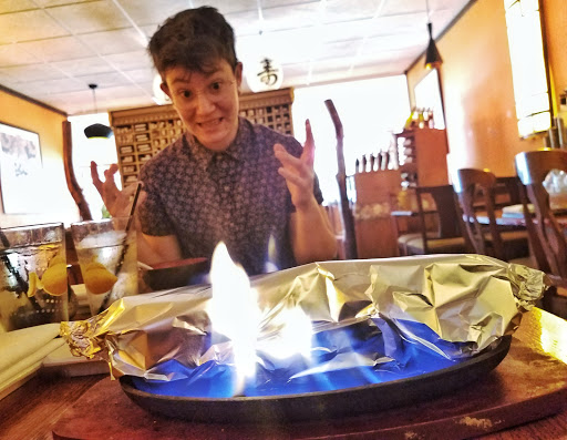 I loved this place. The atmosphere is relaxing, the service was excellent, and I had the best salmon skin roll Ive eaten in 20 years. They have a nice selection of sake, we had two bottles, and they were both presented beautifully as well as being delicious. The rest of the meal was equally good, and I will be coming back whenever Im in Lawrence.