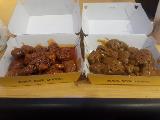 I dont know if it is largely due to that this location has only been open for 4 days officially or if I just caught it on a bad night but this was easily one of the worst experiences Ive had at a Buffalo Wild Wings. I placed a to go order during dinner rush and was told my order would be ready in 20-25 minutes. The young lady who took my order asked me to repeat my name 3 times for her over the phone, I even went so far as to spell it out for her letter by letter. Upon arriving, they couldnt find my order because the girl misspelled my name in the computer. They forgot to include the side order of ranch that I had requested and I had to wait another 5 minutes for someone else to go get it. Upon getting home, (we live less than 5 minutes away) I opened my food to find that the potato wedges we had ordered were almost cold, didnt look appetizing at all, and the cheese looked like it had been sitting under a heat lamp all day. The wings were satisfactory though. The only redeeming quality about our brief visit to this location was the conversation that I had with an employee named Elizabeth, who went above and beyond in delivering extraordinary customer service. The young man that I first gave my name to to find my order didnt even follow up with me to tell me they couldnt find it. He looked, didnt see it, and then proceeded to help other customers instead of asking me if it wouldve been under another name or ask me what my order was. Had it not been for Elizabeths initiative, we may have continued to wait for our food much longer than we already did. Bottom line, its a Buffalo Wild Wings, and while its nice to have a new food destination locally, they need to get their feet under them before I probably go back.