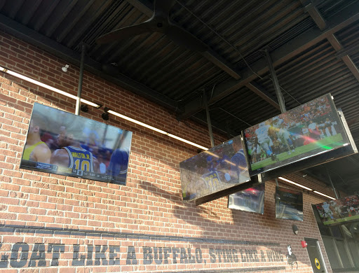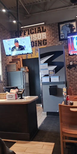 By far the worst Buffalo Wild Wings Ive been to. The service is mediocre on good days. Definitely dont go for lunch. The servers are too busy talking to each other to provide service for the table. The food is hit or miss. Ive had decent burgers, but more times than not, the wings come out of the kitchen warm, not hot, and barely covered in sauce, which is disgraceful for an establishment which claims to specialize in wings. Then they have the nerve to charge extra for dipping sauce. The beer prices are a joke too. They have a good selection, but the beer you want has to be on special to match the price you can find it for regularly at other restaurants.