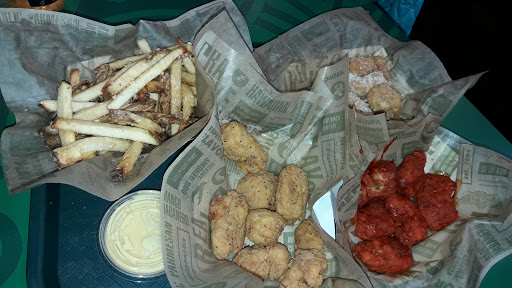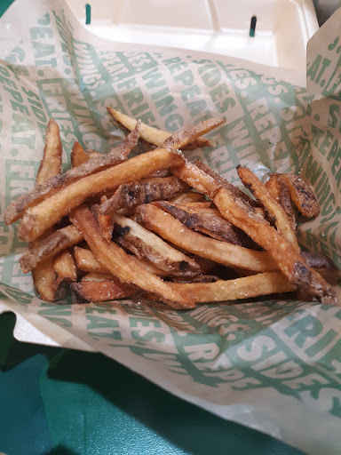 Went on a monday evening a couple weeks after it opened. There were two of us dining. There was one other group of four people dining at the time. An older gentleman took our order after not acknowledging us for several minutes while he swept what seemed to be a clean floor. We each ordered boneless wings, and fries. I ordered mild bbq wings. My dining partner ordered mango jalapeno or something like that. The store was seemingly overstaffed. Yet our order took nearly half an hour to be ready. When it was ready I received buffalo wings(Im a wimp, I barely managed to eat them) after telling the older guy that rang us up he said that was what I had ordered though the receipt clearly said differently. No one came to see how our order was though they did check in on the other group while we were still waiting. We did really enjoy the fries, however the wait combined with my wings being wrongly sauced ruined our visit. We wont be returning.