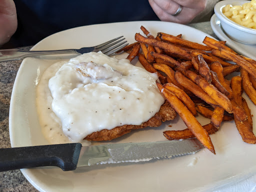 Service is excellent. Very affordable $. Atmosphere is tired and dated. The menu is almost entirely boxed and par cooked frozen entrees. The vegetables are served from a can. I tried the country fried steak dinner with mashed potatoes and green beans. 3 stars. I have no interest in trying it again.
