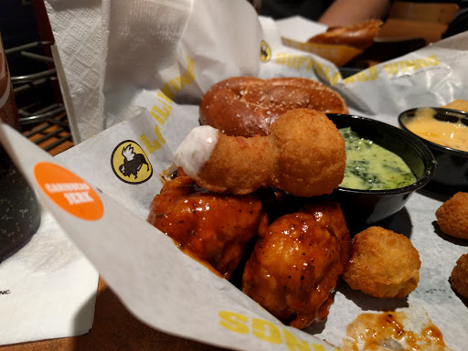 The wings here are great. Not sure what all the negative reviews are for as Ive been going to this location for the years now and never had an issue. Also to the people complaining about paying extra for ranch or celery that is only done if you order the specials like Wings Tuesday and Boneless Thursday and its done at every Buffalo Wild Wings not just this location. Ive been to Buffalo Wild Wings locations in 6 different states and this is one of the best. Any time Ive been there the staff has always been super responsive and fast. If the wings come out and theres not enough sauce on them to my liking(very rare occasion), the staff will take them back and have them re-tossed in the sauce.